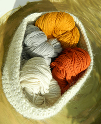 Ein Strang Ziegenhaar aus 50% Schurwolle und 50% Ziegenhaar reicht für einen Korb von einem Durchmesser von 30-40 cm, Höhe dann ca. 12-20 cm. Wir haben runde, ovale, schlichte und lochgemusterte Ziegenhaar-Körbe gemacht. Ein griffiges Garn, an das man sich sehr gewöhnen kann ;-))
